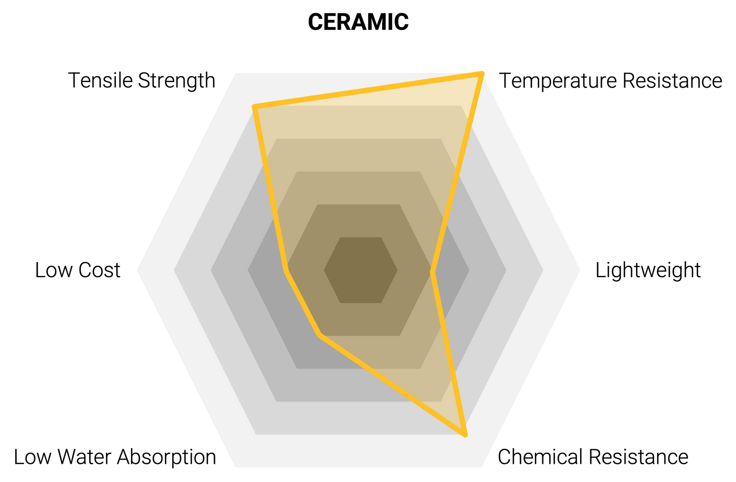 Följ länken nedan för att se vårt datablad Ceramic . Detta inkluderar egenskaper som mekanisk, elektrisk, termisk och kemisk beständighet.