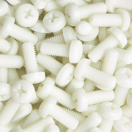 Imperial RENY Cross Recessed Pan Head Screws, available in sizes from 2-56 to 1/4-20 and lengths from 3/16" to 1-1/4", are made from a high-performance, glass-fiber reinforced polyamide. The screws offer exceptional mechanical strength, chemical resistance, and thermal stability, making them ideal for applications in electronics, automotive, aerospace, industrial machinery, and medical devices. The features of high mechanical strength and chemical resistance, along with advantages like dimensional stability, lightweight nature, and electrical insulation, make these screws a versatile and reliable choice for securing components in demanding environments.