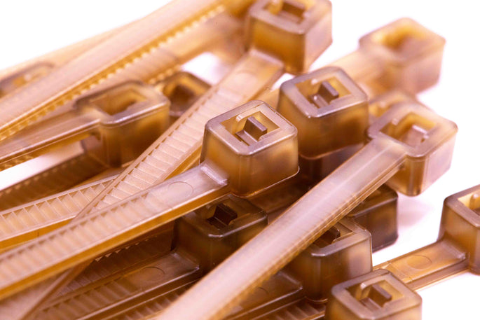 Våra standardkabelband har de exceptionella egenskaper som du hittar i Victrex™ PEEK 90G-material. Banden togs ursprungligen fram för försvarsindustrin för att användas i specialtillämpningar, men togs sedan över av flygindustrin eftersom PEEK har mycket bättre prestanda än traditionella nylonband. Våra buntband har samma prestanda som metallbuntband, men med kraftigt reducerad vikt och ökad korrosionsbeständighet.