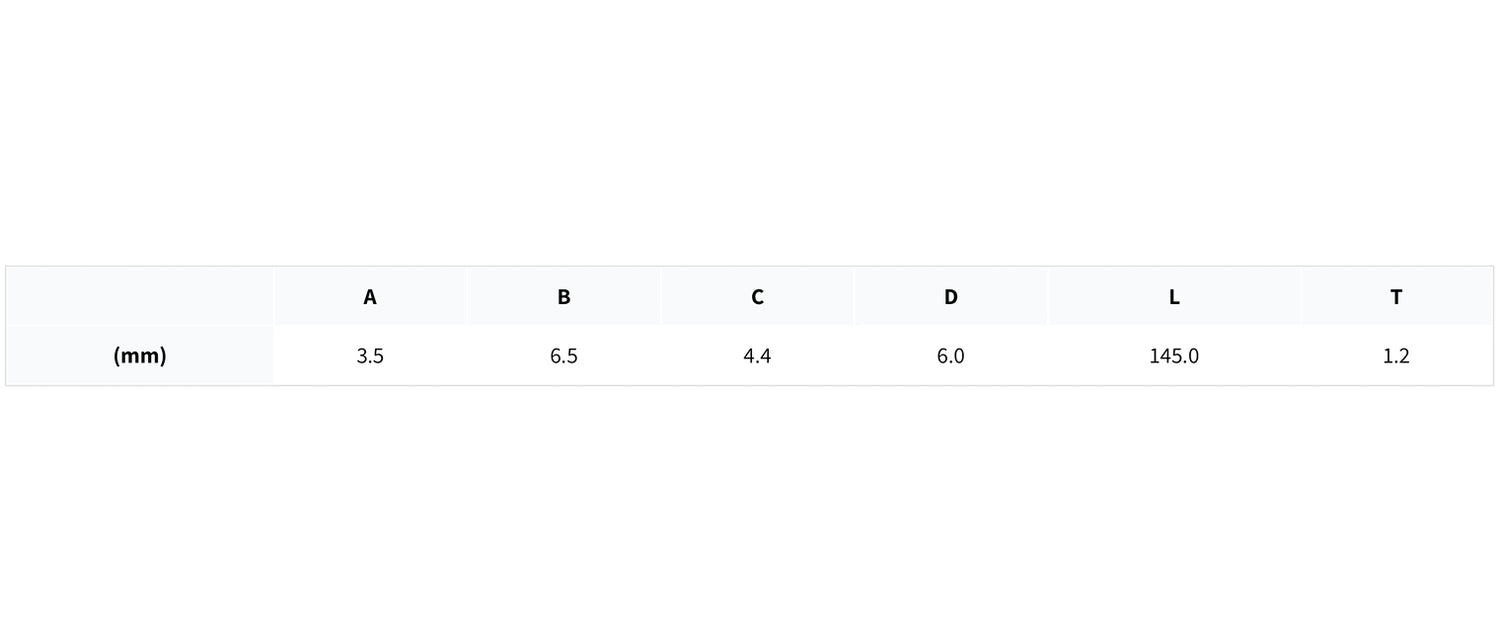 Mått för PEEK Kabelskor i alla tillgängliga storlekar visas enligt produktritningen ovan.