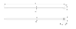 Mått för PEEK buntband (med monteringshål) i alla tillgängliga storlekar visas enligt produktritningen ovan.