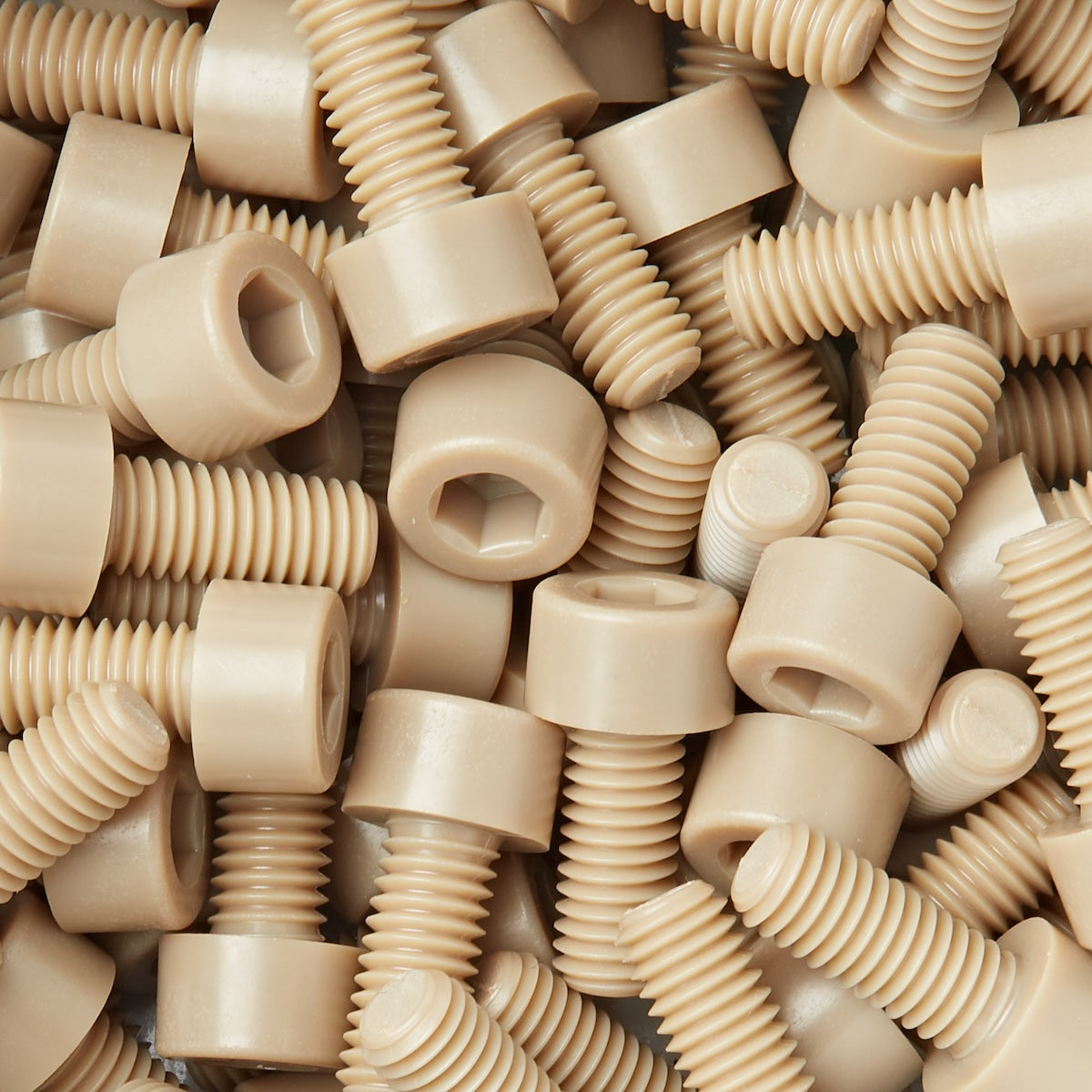 Skruvar med hylsa möjliggör en mängd olika tillämpningar tack vare infästningstyp, drivtyp och hållfasthet. Våra standard PEEK hylsskruvar är mycket populära eftersom de uppfyller DIN912-specifikationen. PEEK GF30-materialet ändrar inte detta och ger extra draghållfasthet för att klara de mest krävande applikationerna.