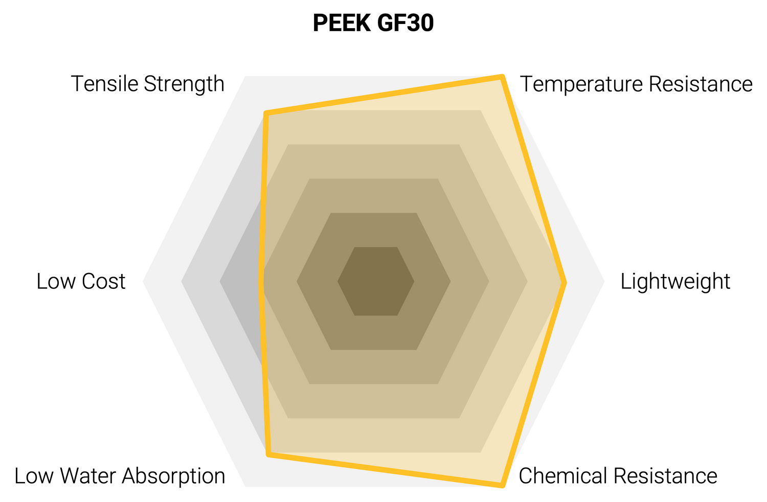 Följ länken nedan för att se vårt datablad PEEK GF30 . Detta inkluderar egenskaper som mekanisk, elektrisk, termisk och kemisk beständighet.