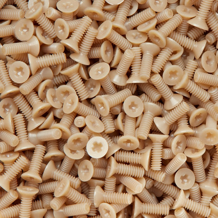 PEEK Micro försänkta skruvar (även kända som Flat Head) finns i mikrostorlekar från M1.2 till M1.6 och längder från 2,5 mm till 4 mm.