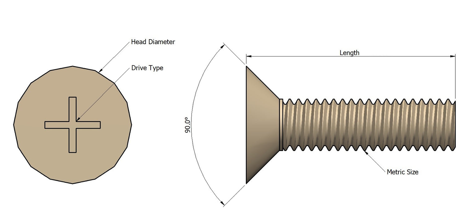 Standardhuvudvinkeln för alla våra försänkta skruvar är 90 grader.