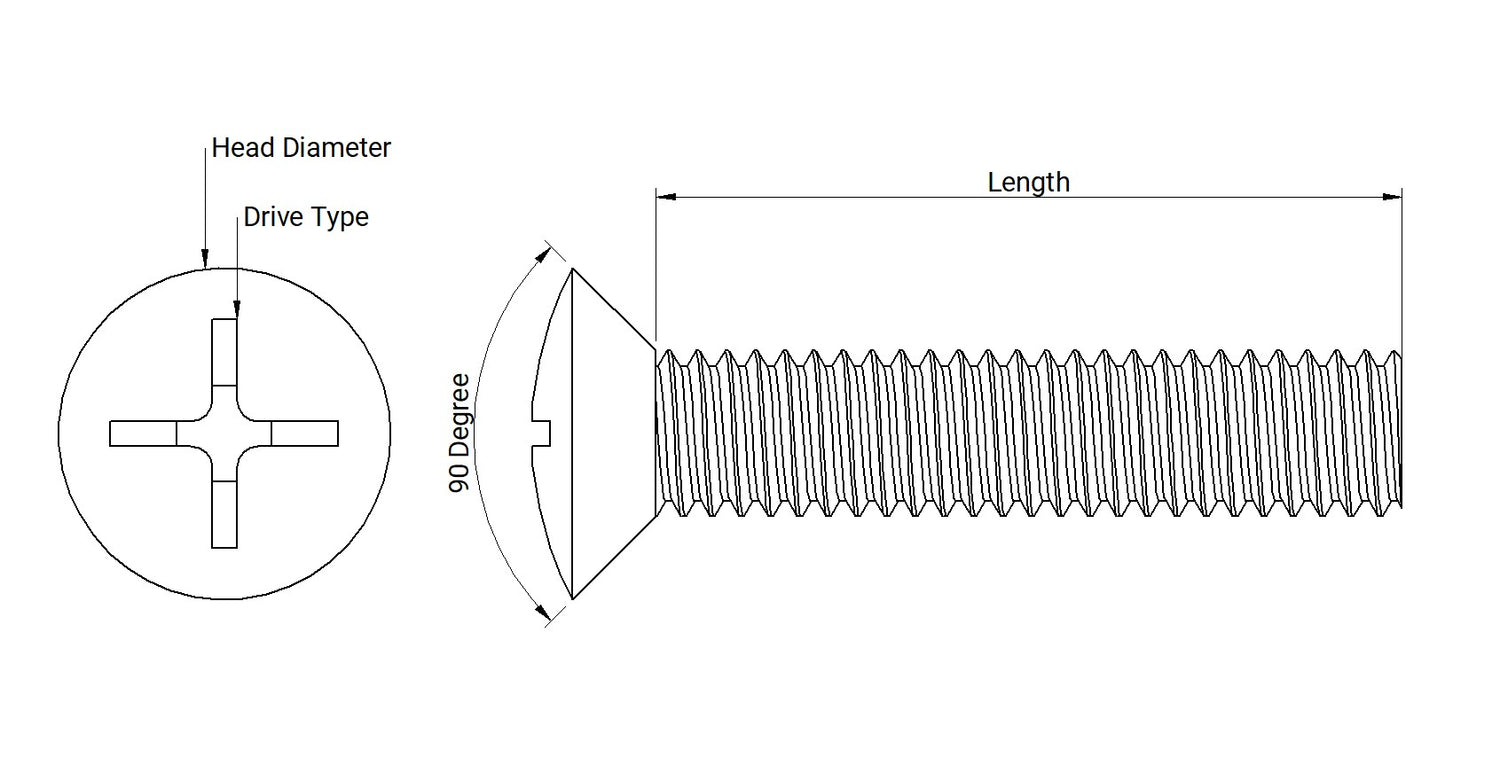 Standardhuvudvinkeln för alla våra kupolformade försänkta skruvar är 90 grader.