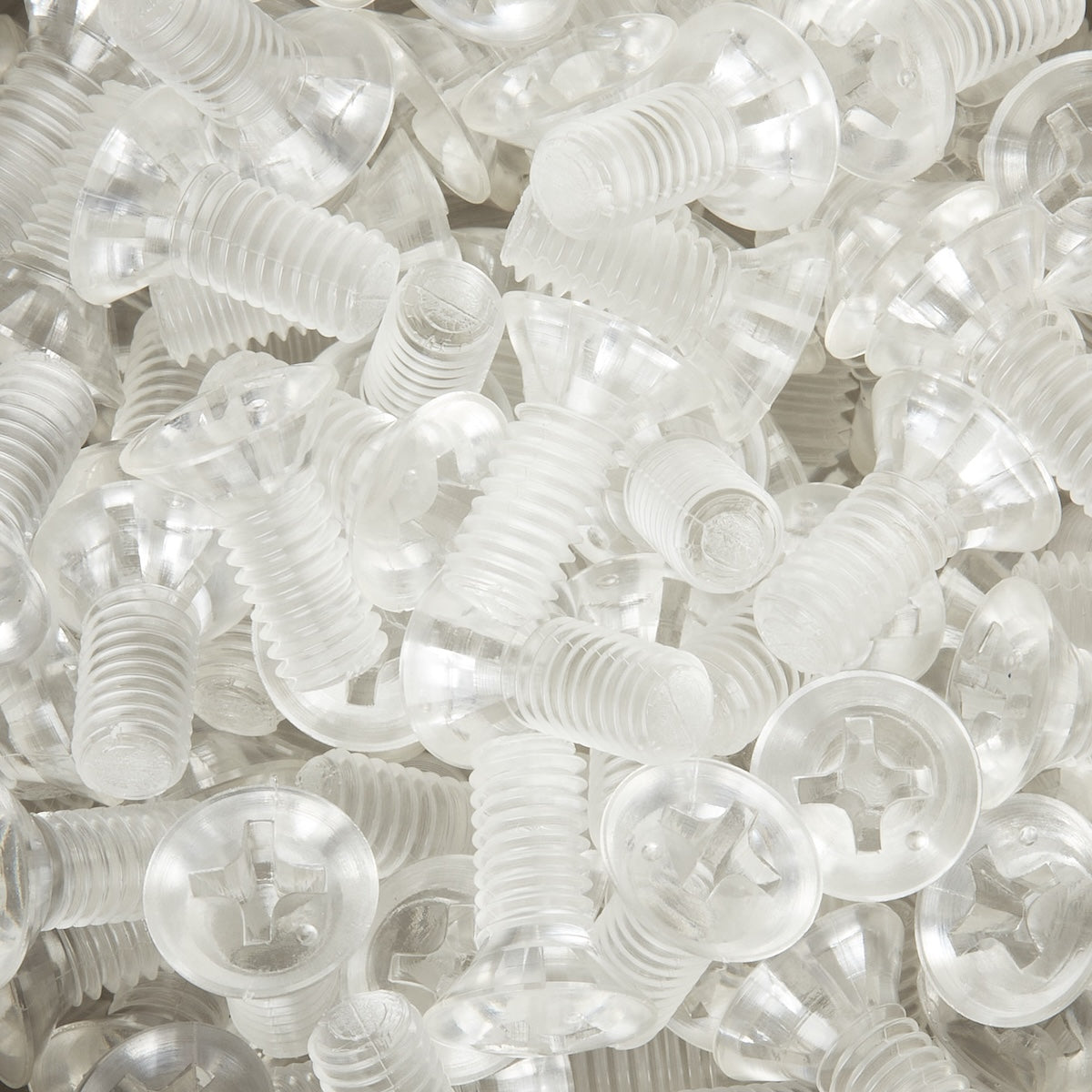 Våra försänkta PC-skruvar är transparenta till färgen.