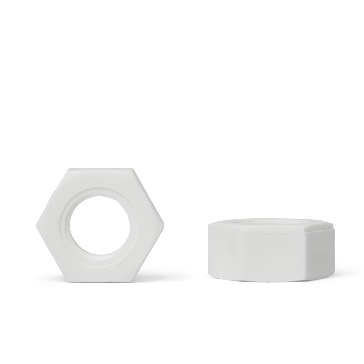 Sexkantsmuttrar i polypropylen (PP) är en utmärkt polymermutter för allmänt bruk och används ofta i en mängd olika applikationer. PP är ett av de lättaste materialen vi tillhandahåller med en specifik vikt på 0,9. Detta i kombination med utmärkt kemikalie- och hydrolysresistens samt elektrisk isolering gör PP till ett utmärkt fästelement för allmänna tillämpningar.