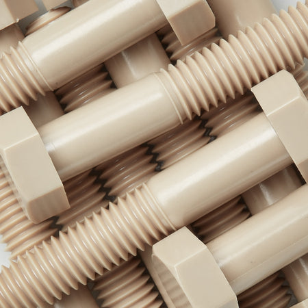 Vårt PPS-sortiment är förstärkt med 40% glasfiber, vilket ger draghållfastheter som liknar vårt PEEK GF30-sortiment (30% glasfiberförstärkt), men med ett mycket större urval av storlekar och till lägre kostnad.