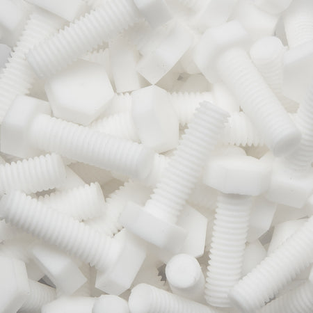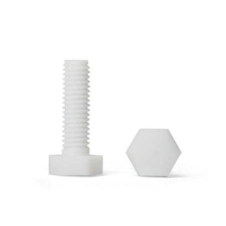 Vårt sortiment av PTFE-sexkantbultar är tillverkade av 100% PTFE och ska inte förväxlas med belagda bultar i rostfritt stål.