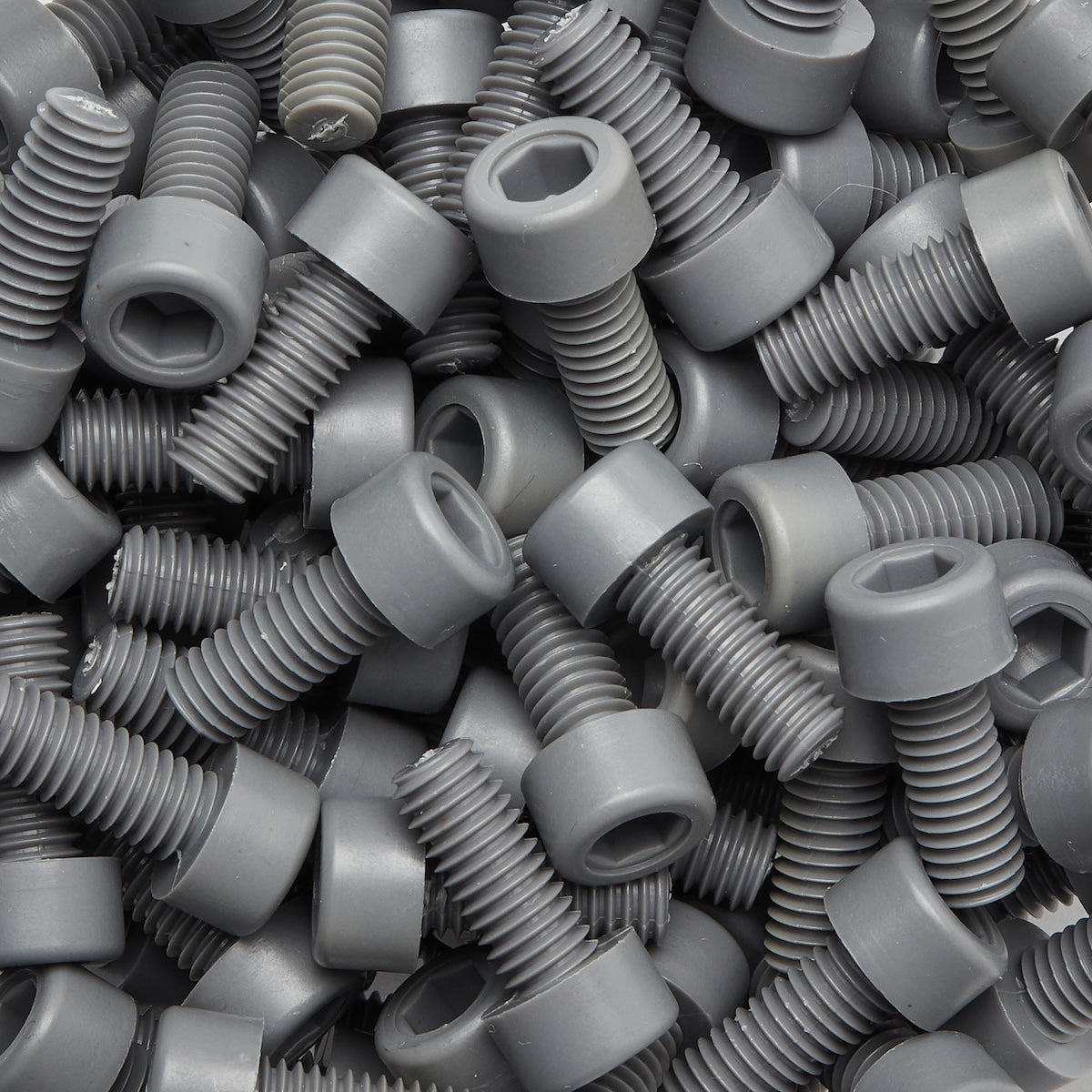 PVC-sockelskruvar är därför fästelement tillverkade av PVC-plast, med ett cylindriskt huvud och en sexkantig hylsa. Dessa skruvar kan användas i applikationer där korrosionsbeständighet är viktigt, t.ex. i utomhus- eller marina miljöer. De kan också användas i tillämpningar där man vill ha ett billigt fästelement, t.ex. inom bygg- eller tillverkningsindustrin. PVC-insexskruvar kan användas för att fästa delar i varandra, t.ex. vid montering av maskiner eller utrustning, eller för att säkra delar på plats, t.ex. lager och kugghjul. De kan användas i en mängd olika applikationer, inklusive konsumentprodukter, apparater och andra hushållsartiklar.