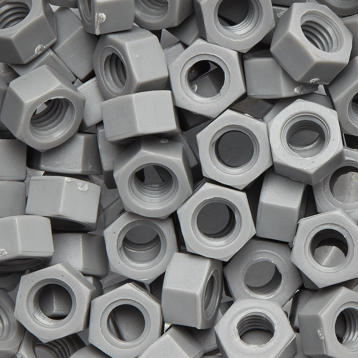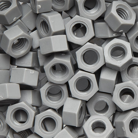 Våra PVC-sexkantmuttrar uppfyller kraven i DIN 934-specifikationen. Vi rekommenderar att våra sexkantsmuttrar kombineras med plana brickor i PEEK för att säkerställa att fästelementet eller komponenten inte skadas vid åtdragning.