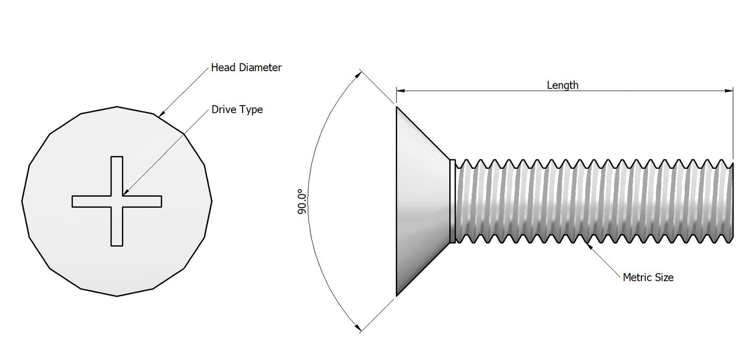 Standardhuvudvinkeln för alla våra försänkta skruvar är 90 grader.